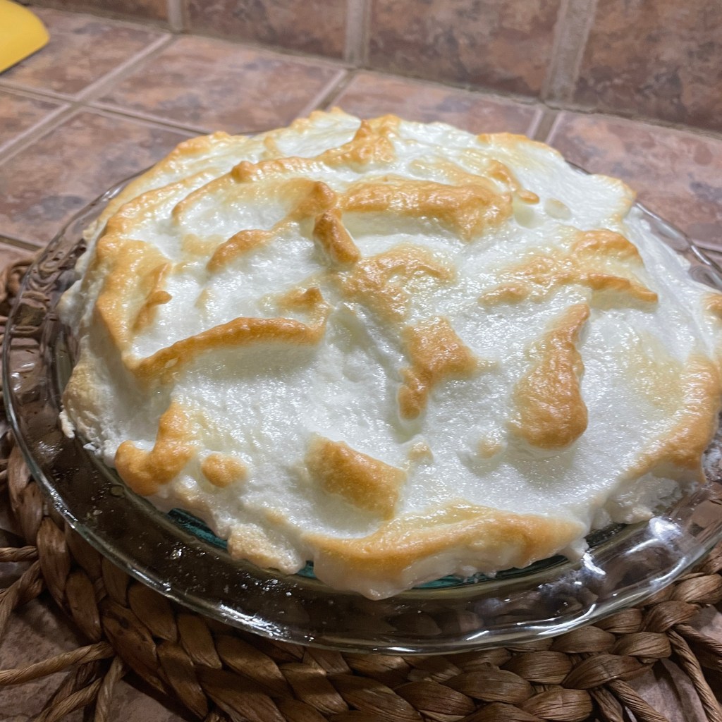 Prepare the meringue by beating the egg whites and sugar until soft peaks form. Add the meringue to the pie and bake for 15 minutes. The meringue should have lightly browned peaks. Allow pie to cool to room temperature and then chill in the “ice box” overnight or at least four hours.